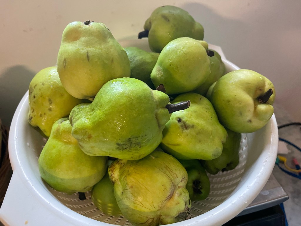 La cotognata si prepara con le mele cotogne, che in Italia sono infatti chiamate “mele cotogne.” Le mele cotogne sono dure come le pietre quindi per consumarle si devono cucinare. In questa occasione, sono state cucinate in acqua bollente sei chili di mele cotogne e poi sono state fatte a puree’.