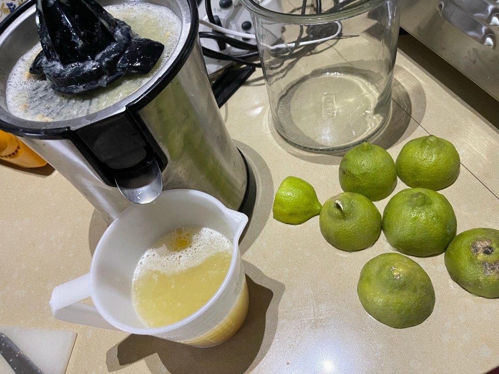 Un succo di limoni spremuti al momento viene aggiunto alle mele cotogne a puree’ nella pentola