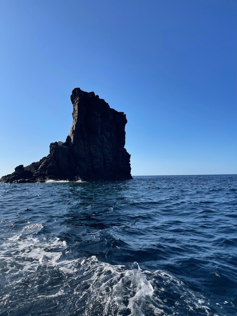 Ho partecipato ad una escursione a mare in cui Naomi ha condiviso informazioni interessanti sulla geologia, storia e fauna marina dell’isola. Le delucidazioni di Naomi erano eccellenti. In basso la foto del faraglione chiamato Canna, alto 71 metri. Canna e’ il risultato di eventi vulcanici nell’isola di Filicudi 40.000 anni fa! Un escursione con maschera intorno alla Canna e’ stata mozzafiato!