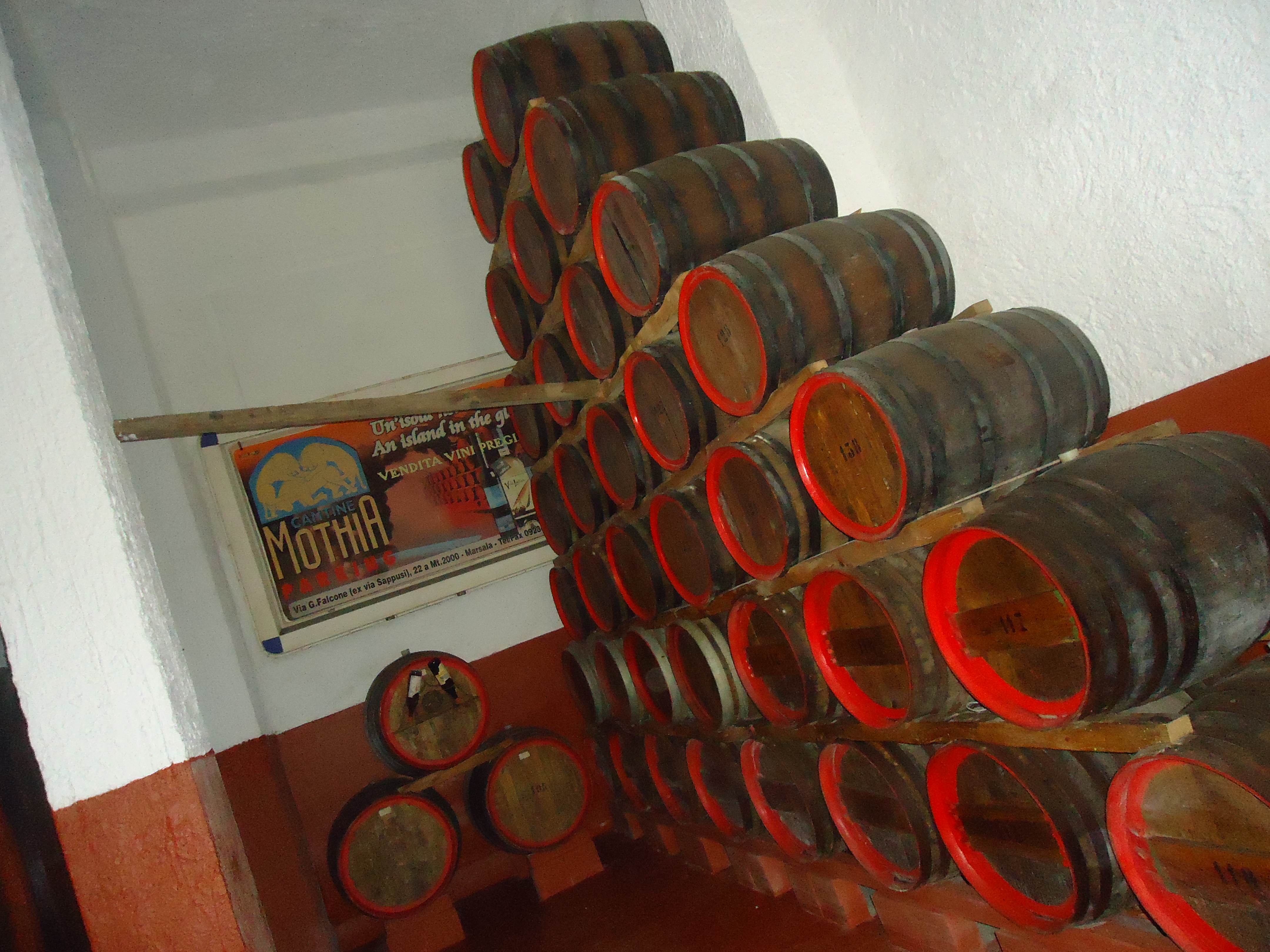 I arrived at my desitnation in Spagnola, across from the island of Mozia, in the evening. The owner of the campground greeted me with Pani Cunzatu (a loaf of bread with olive oil, cheese, tomatoes and olives) and a glass of wine. Quite a welcome! I vsited with the owners, Lucio and Rosi, and their family. The next morning Lucio drove me to the city of Marsala and introduced me to the owner, Mr. Bonomo, of one of the wine cellars, Cantine Mothia. Mr. Bonomo had been a third generation wine barrel maker until he purchased the Mothia Wine cellars approximately 15 years ago. He was very proud to show me around and explained so much about wine making.
