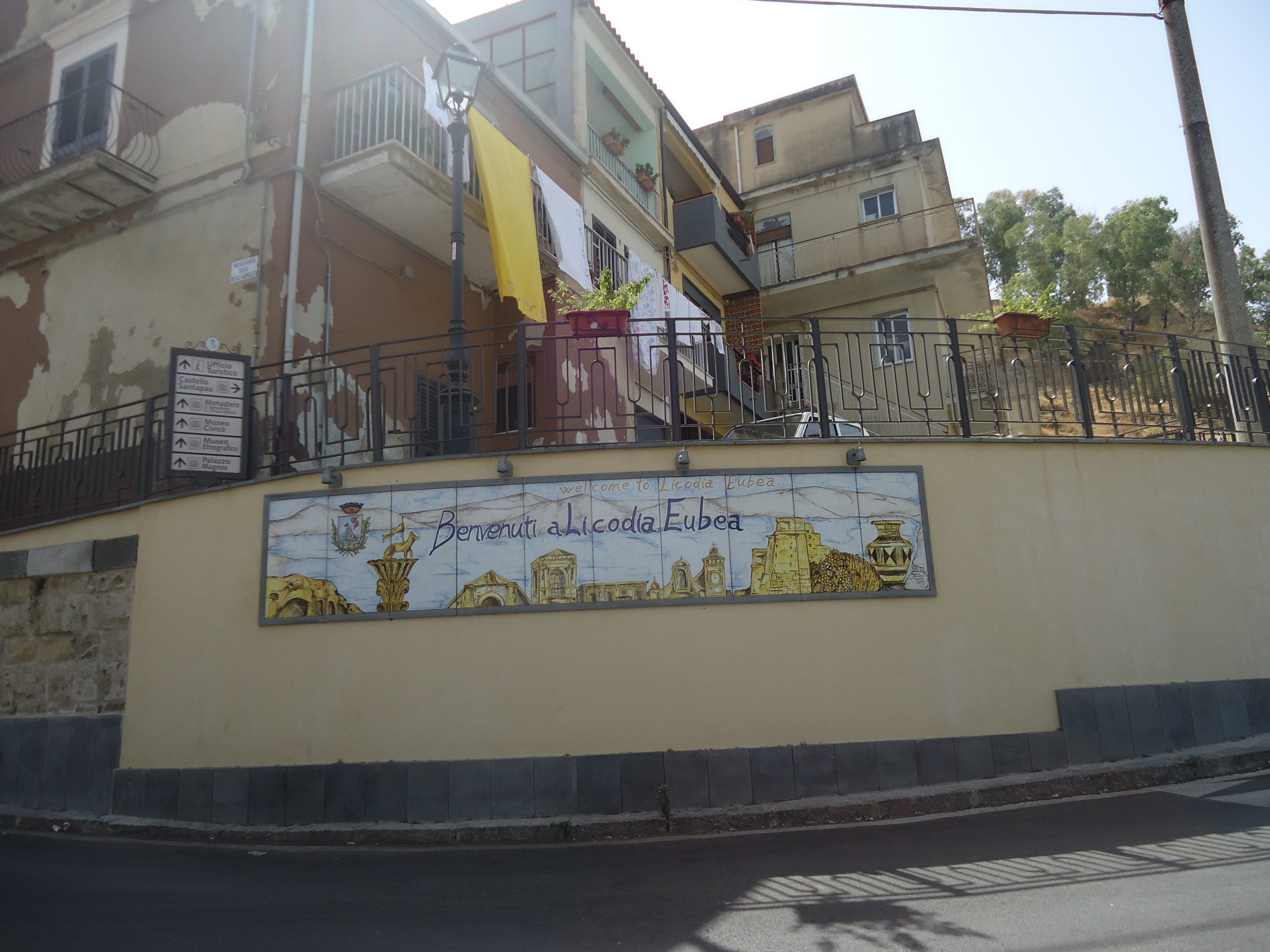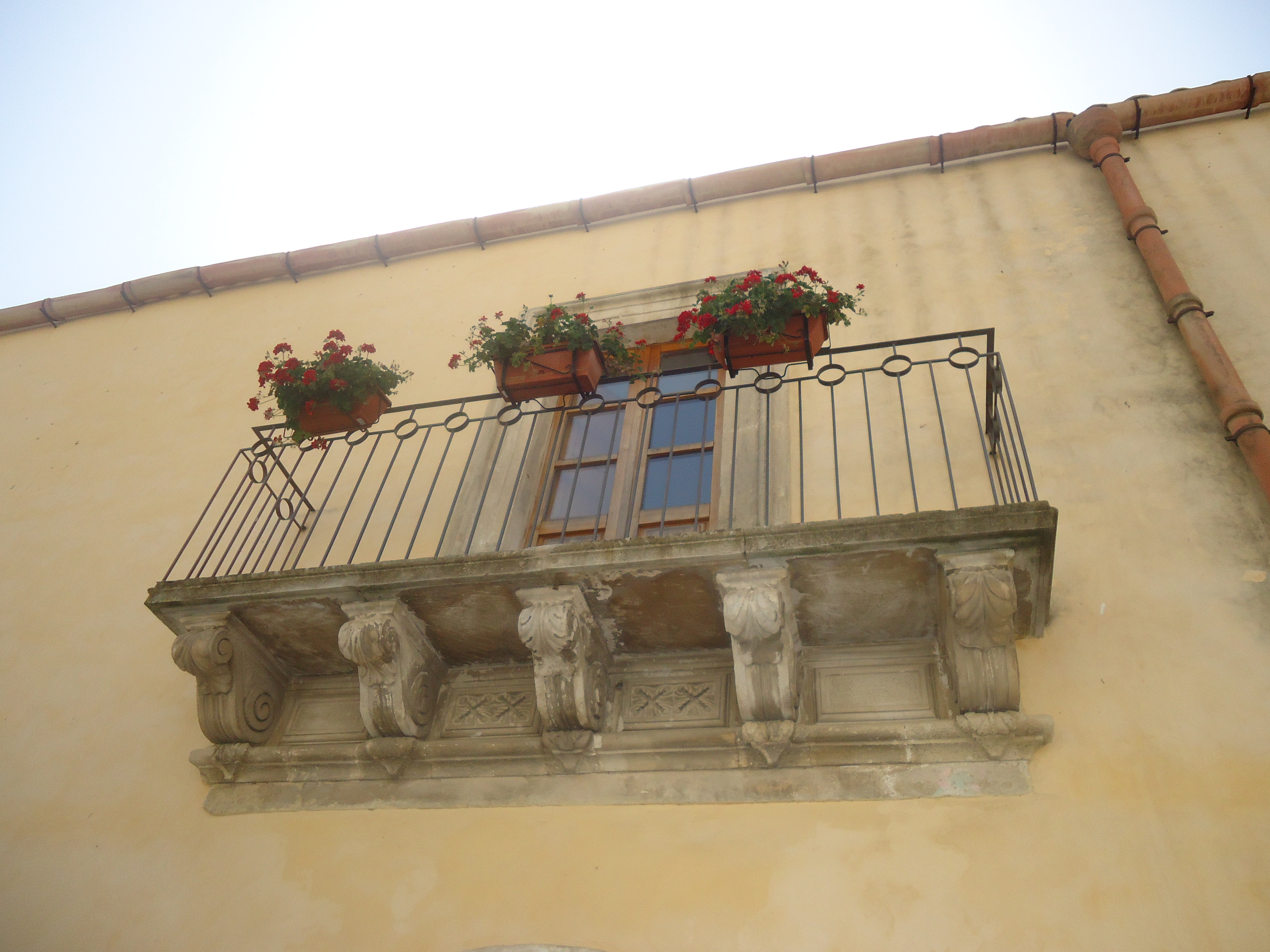 Following are some pictures I took in Licodia Eubea. 1. The ceramic welcome sign. 2. A courtyard.  3.  The Church of Santa Margherita. 4. A balcony.