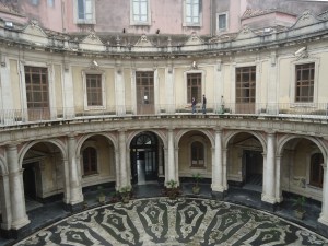 The tour started at Convitto Cutelli, a prestigious school, housed in one of the baroque buildings in Catania. The Aula Magna, shown below, was the setting for important historical events in the history of Sicily. One of such events, was the prosecution of some Siclian heroes who were fighting for Sicily’s freedom from the Borbons during the 1848 revolution.