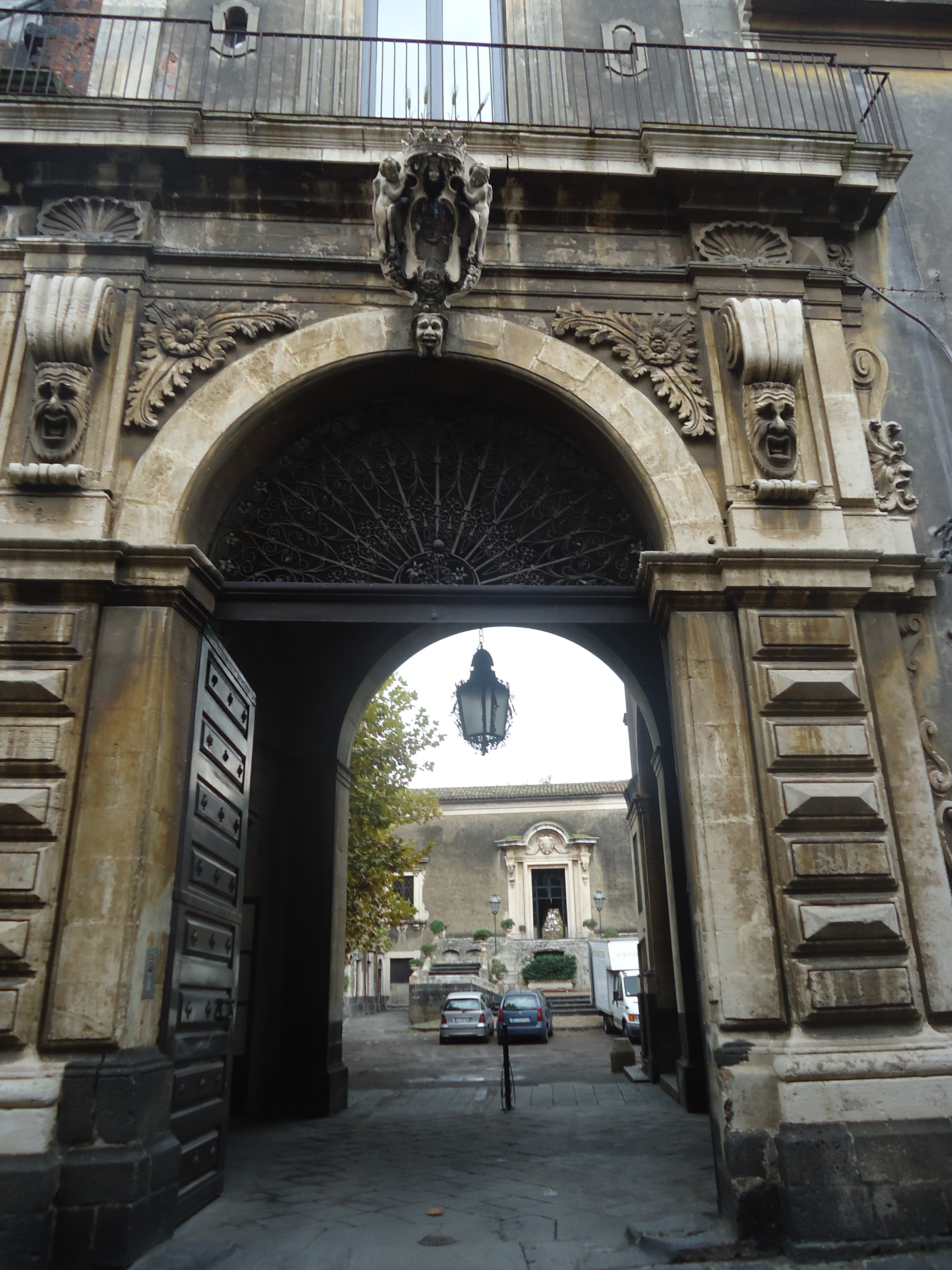 A local association, Etna ‘nginiousa, promoting the arts in Catania, conducted a tour of the city recently, an urban trekking. I participated and on that rainy morning explored some hidden treasures of the architecture in Catania. After the earthquake of 1693 many cities and towns in Sicily were rebuilt in the baroque style.