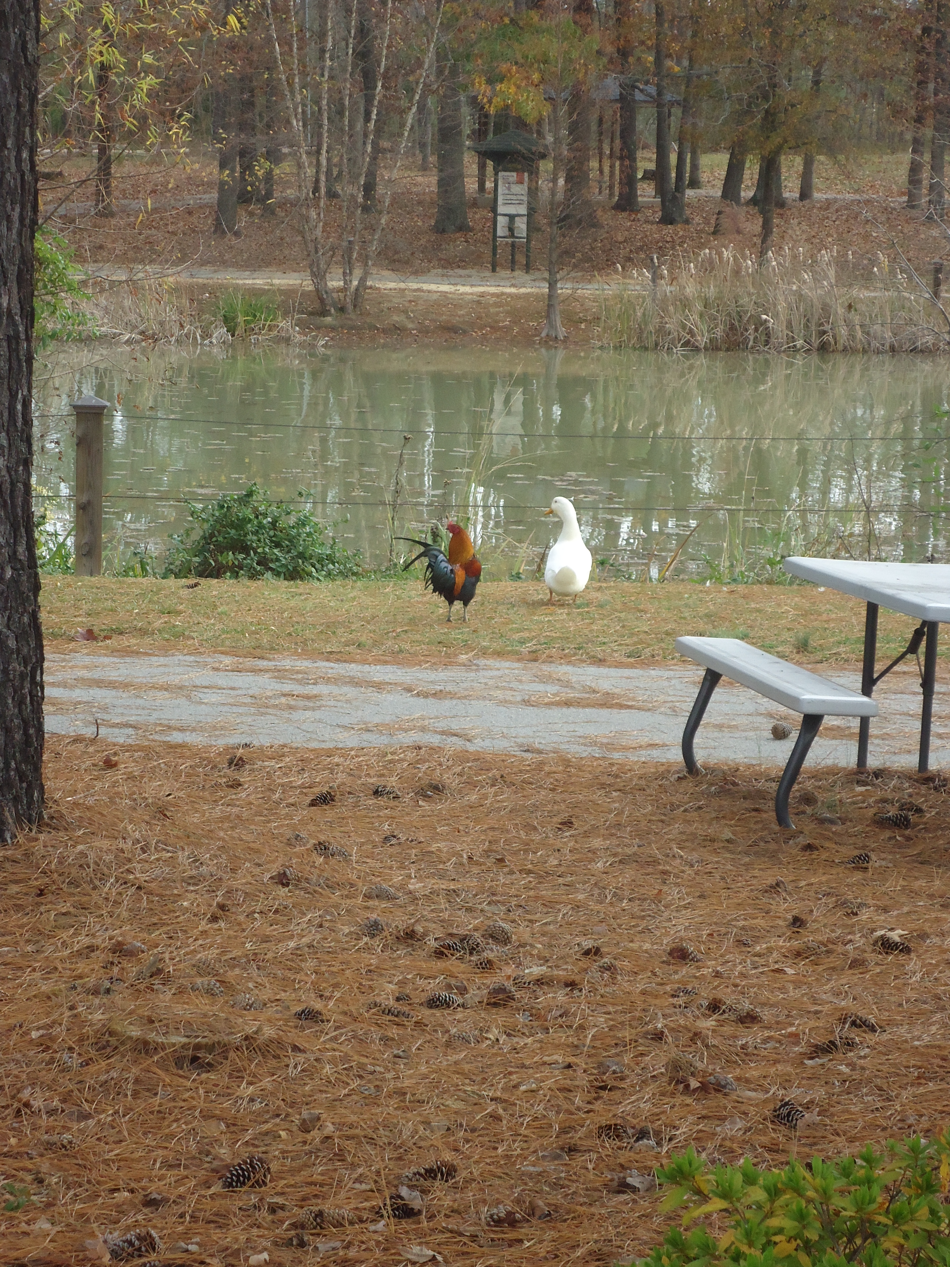 Il pranzo tradizionale include tacchino, che viene cotto farcito, varie verdure, pietanze con la bacca “cranberry” ed il tradizionale Pumpkin Pie. La mattina del 24 novembre 2011, mentre mi trovavo in South Carolina per festeggiare, ho fatto la mia passeggiata mattutina intorno ad un laghetto a White Rock ed ho scattato le foto che seguono. Questi due “amici” hanno catturato la mia attenzione e li ho rivisti i giorni che seguirono avendo modo di apprezzare il loro legame e come trascorrono le loro giornate insieme.