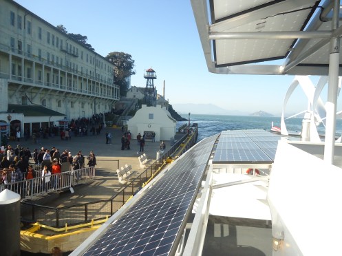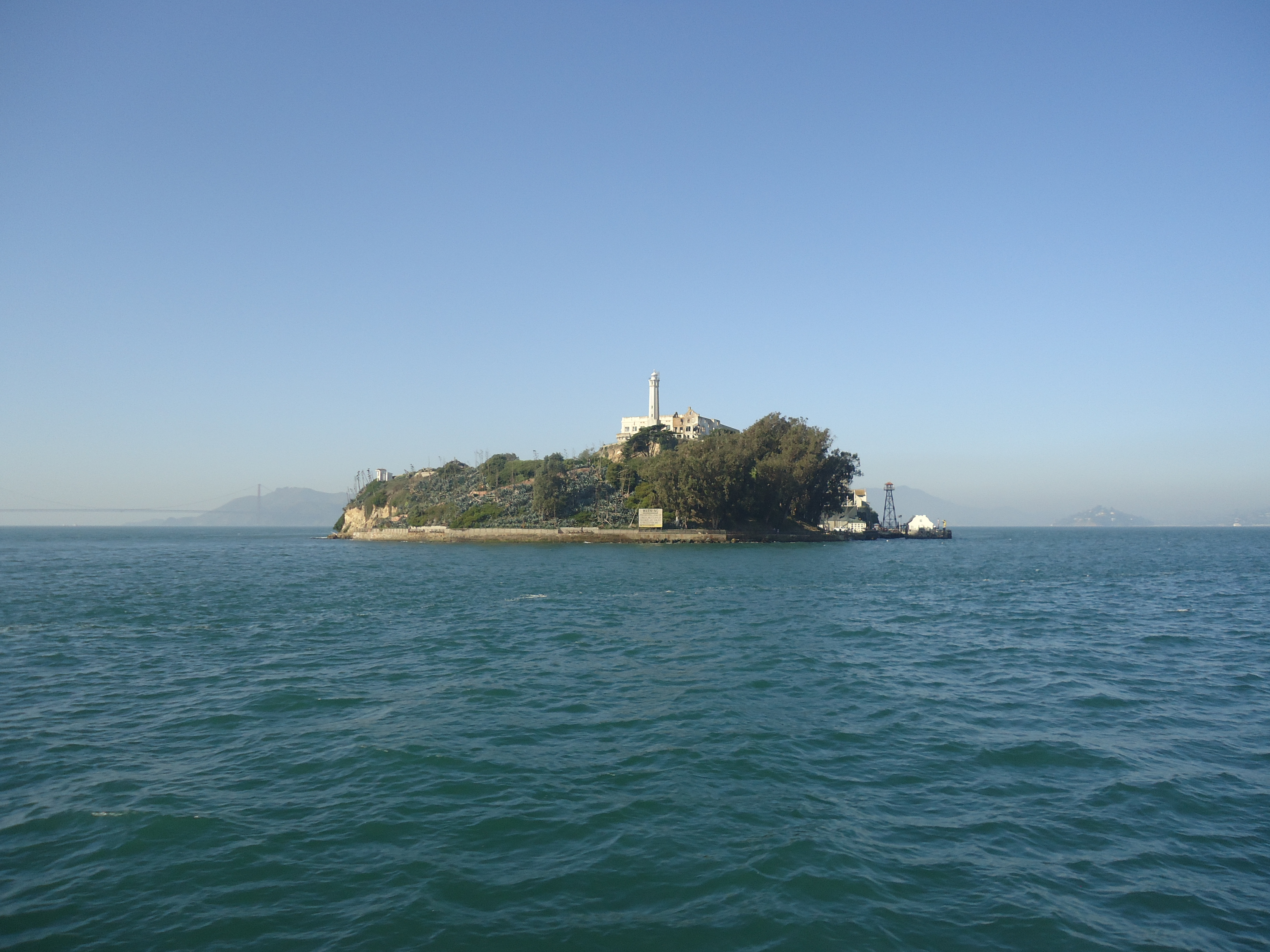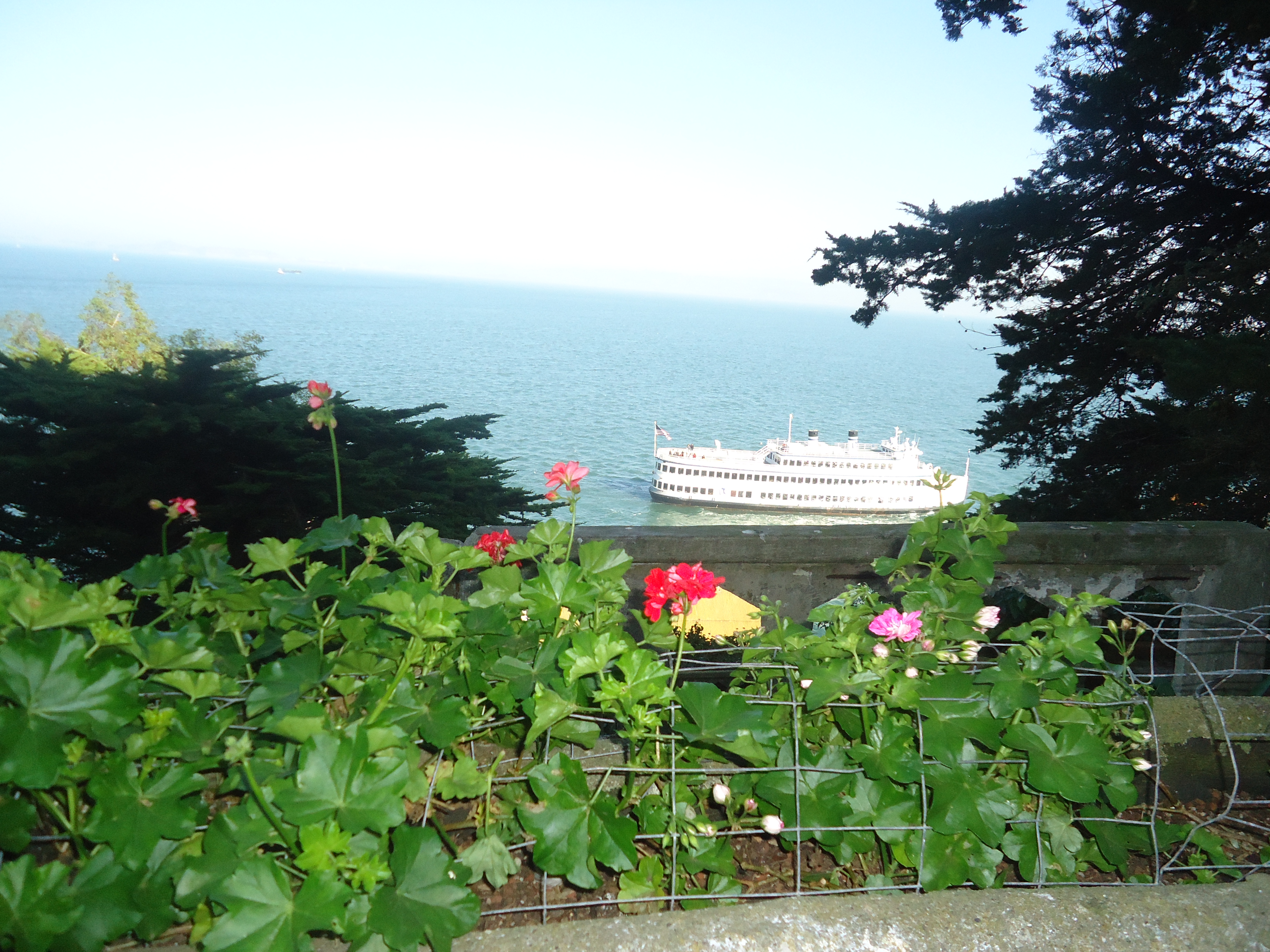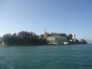 Ever since I watched the movie, Escape from Alcatraz, have I been curious and wanted to visit the famous penitentiary and today I did. This was a beautiful sunny day and the sea was glistening, the seagulls flying around and the bridge clear with no fog wrapped around it. I boarded a solar powered boat and off we went for the fifteen minute ride across the bay. Alcatraz has been given the nickname The Rock and indeed the penitentiary sits on a massive rock in the middle of the San Francisco Bay.