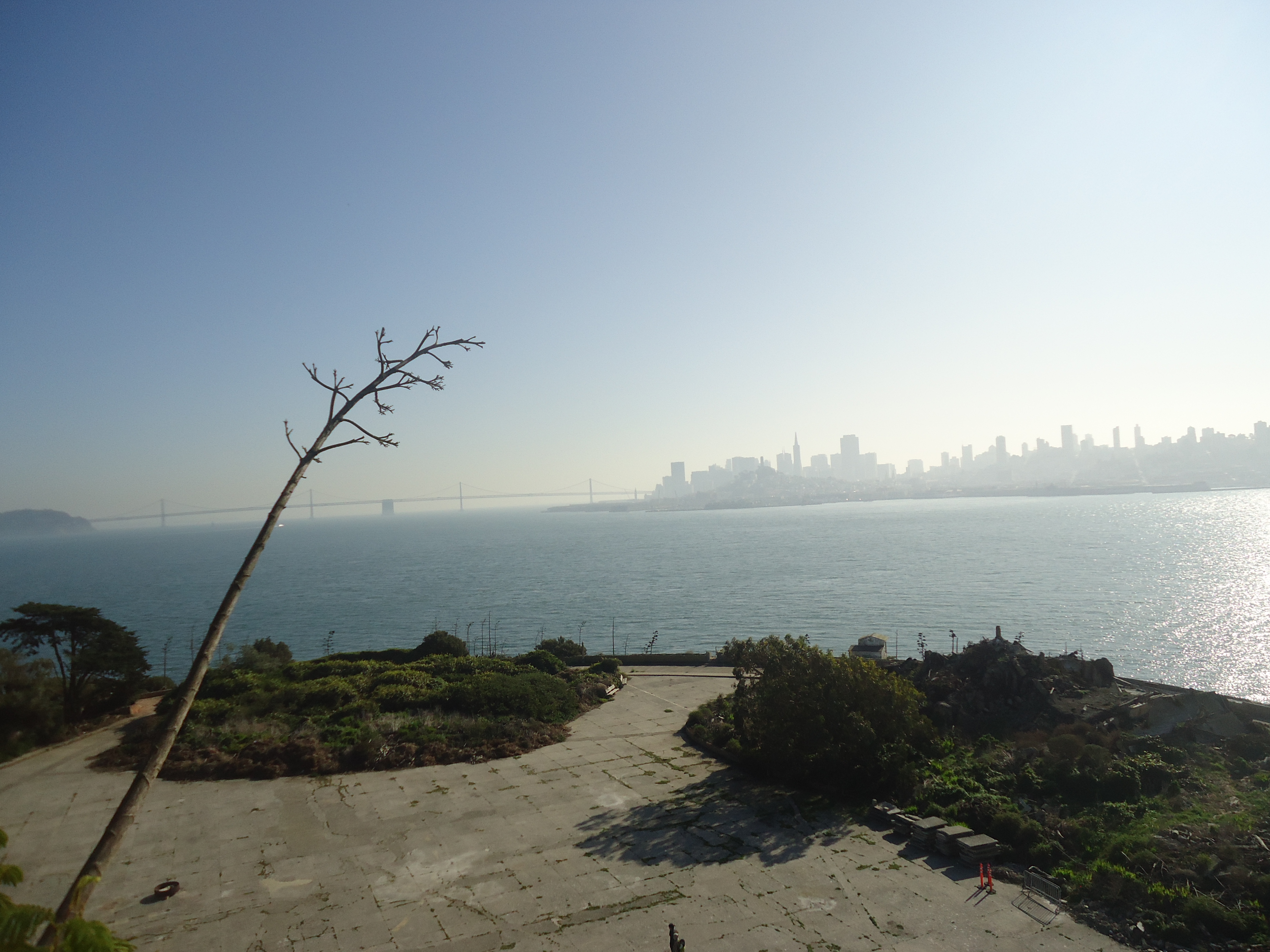 The view from the top of the island is majestic and offers a full view of the entire San Francisco Bay and its bridges and in the backdrop is the San Francisco skyline.
