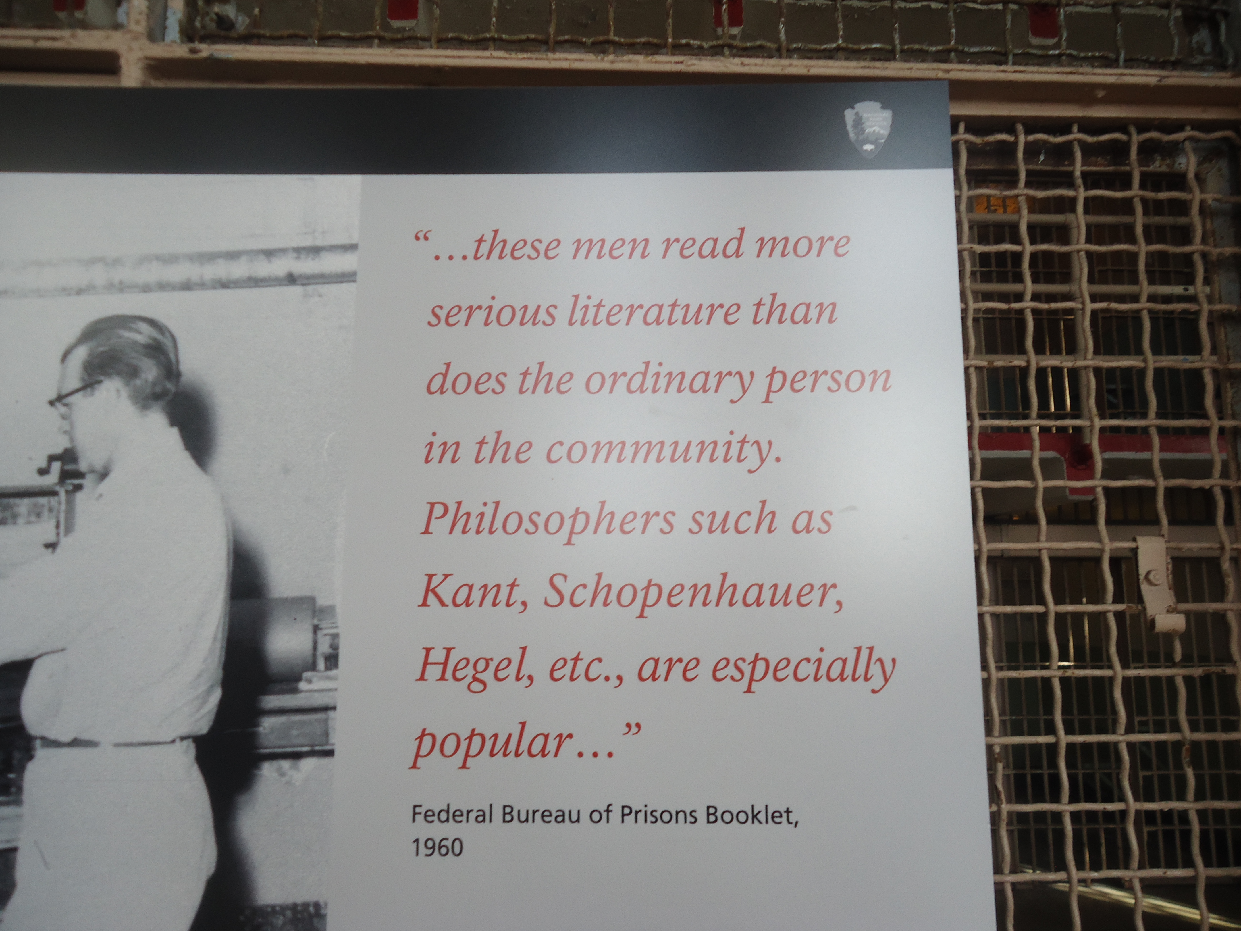 Naturally, the tour of the penitentiary took the visitor from the regular cells, five feet wide, nine feet long and seven feet high to the isolation cells, then the dinner hall , the shower room , but in all of this it was at the library that the sign below caused me to stop and think…….