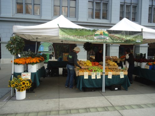 Wow! Is an understatement! San Francisco’s farmers’ market offers a variety of succulent and stunning vegetables. I love swiss chard and have never seen such a healthy looking swiss chard in my life. I couldn’t help myself and ended up buying two bags full of vegetables, which I then proceeded to carry with me for a four hour trek around the city. Following are some pictures of the market and the billboards which are the backdrop to the market.