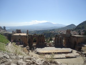 The Greek Theatre in Taormina and Mt. Etna in the backdrop