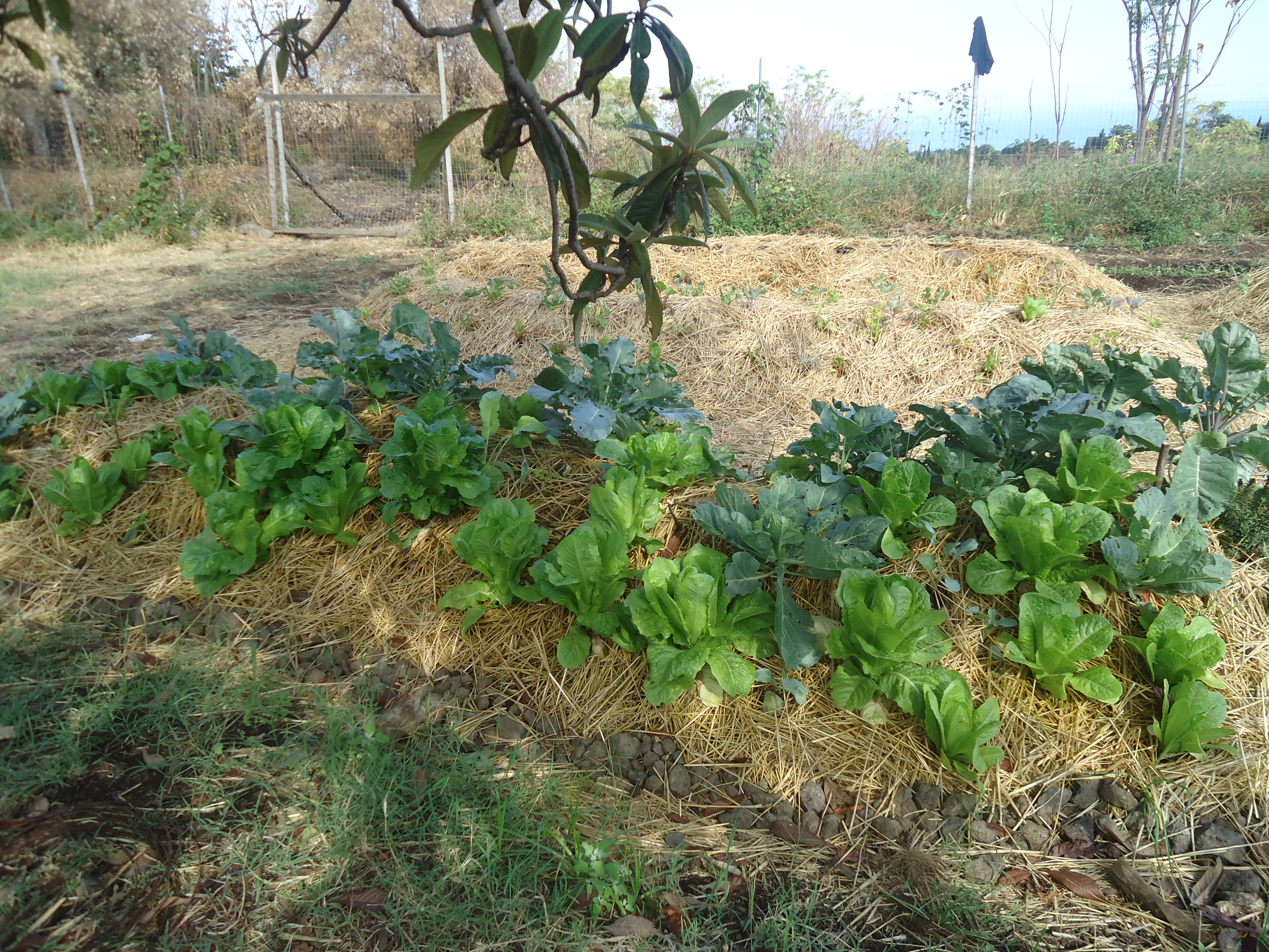 At the end, we walked around some of the vegetable beds on mounds he had created. He grows a large variety of vegetables and has followed the Hugel Method, which he briefly explained. At the base of the mound are tree trunks, then branches, leaves, fronds, covered by soil, a layer of cardboard and straw. In applying the irrigation system, the hose lying on the mound, one can chose to place it either above or under the cardboard. There are pro and con to each method. The pro in having the hose above the cardboard is that if there is a problem with the irrigation system it is easier to access the hose, but the con is that the water will run off the cardboard and, consequently, there will be a greater consumption of water. When placing the hose under the cardboard the pro is that you need less water, but if there is a problem, one has to pull apart the cardboard and the mounds, so Paolo chose to adopt both methods.