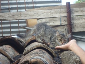 Just before leaving, I stopped and watched Paolo as he was interacting with the wild cats. He was finally able to get a wild cat to eat from his hand. The cat had been roaming his area for one month and had never allowed him to get close to it.