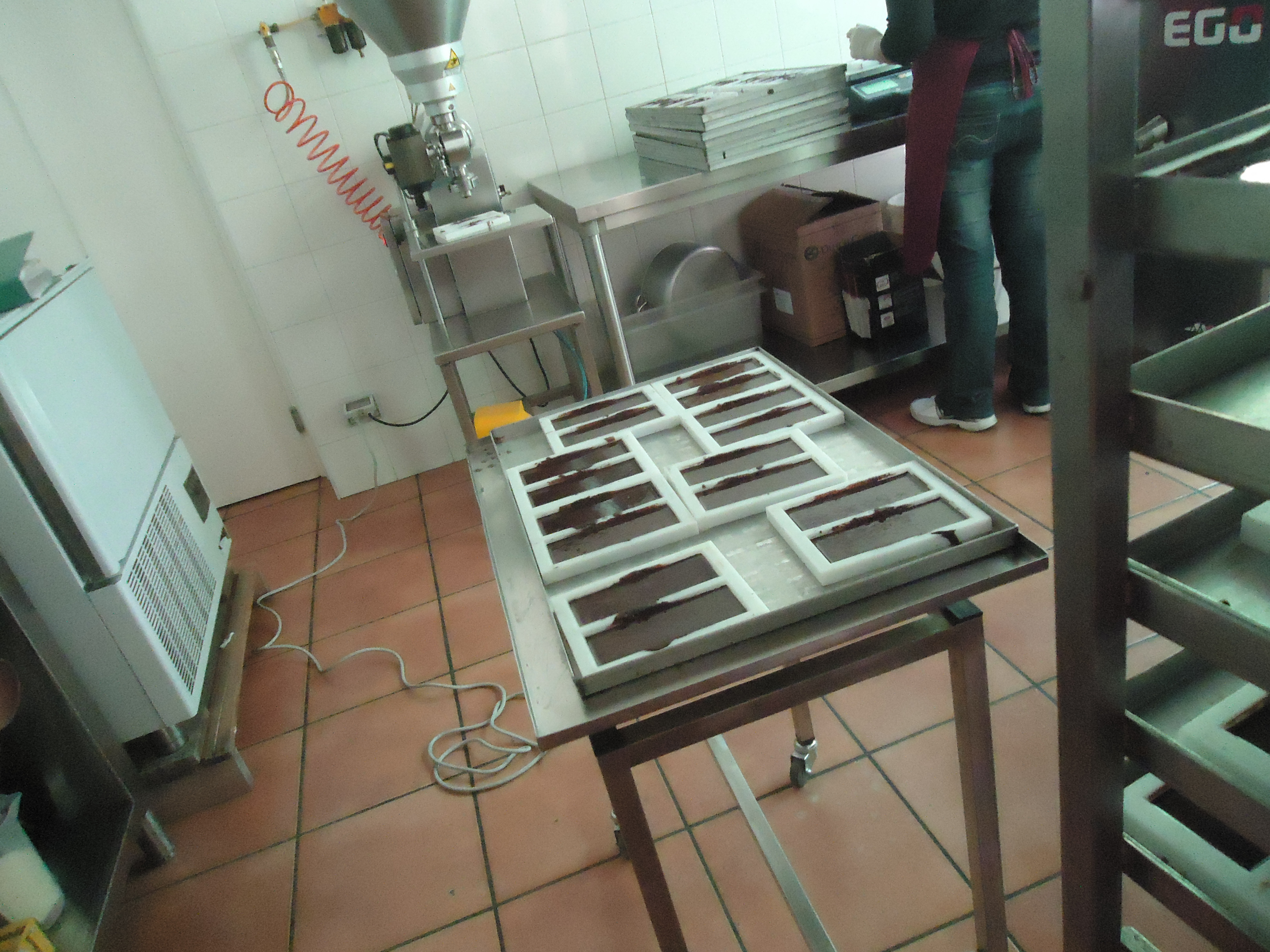 The picture above shows the Modica chocolate in its appearance at different times after its production. To the right hand side is chocolate that is shiny and has just been made, while the chocolate to the left has a different color, and looks dry. However, it is not bad, but this is how it looks after about two days from production. The Modica chocolate looks dry because it doesn’t undergo the “temperaggio” process, used on other chocolates, in which the chocolate undergoes a rapid drop in temperature and then the temperature is brought back to normal with the purpose of stabilizing the product.