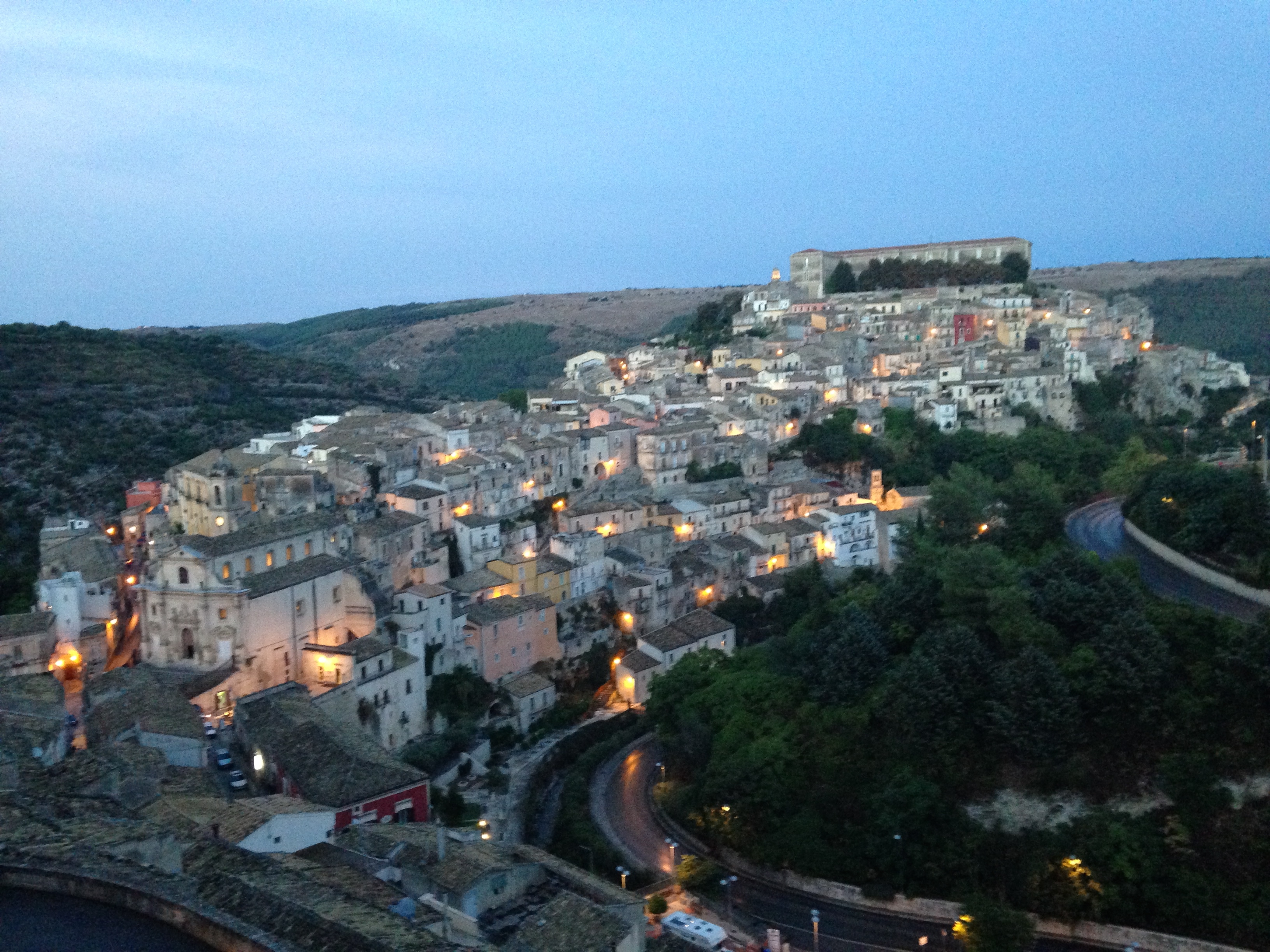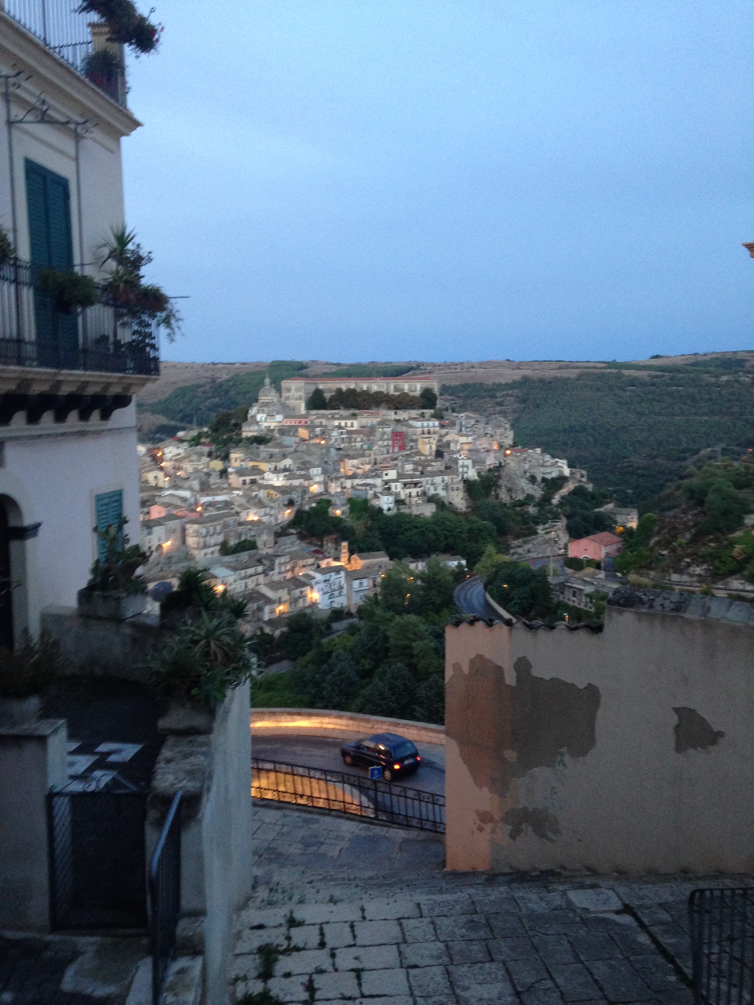 Ragusa Ibla seen from the top of the staircase leading to it from Ragusa up high.