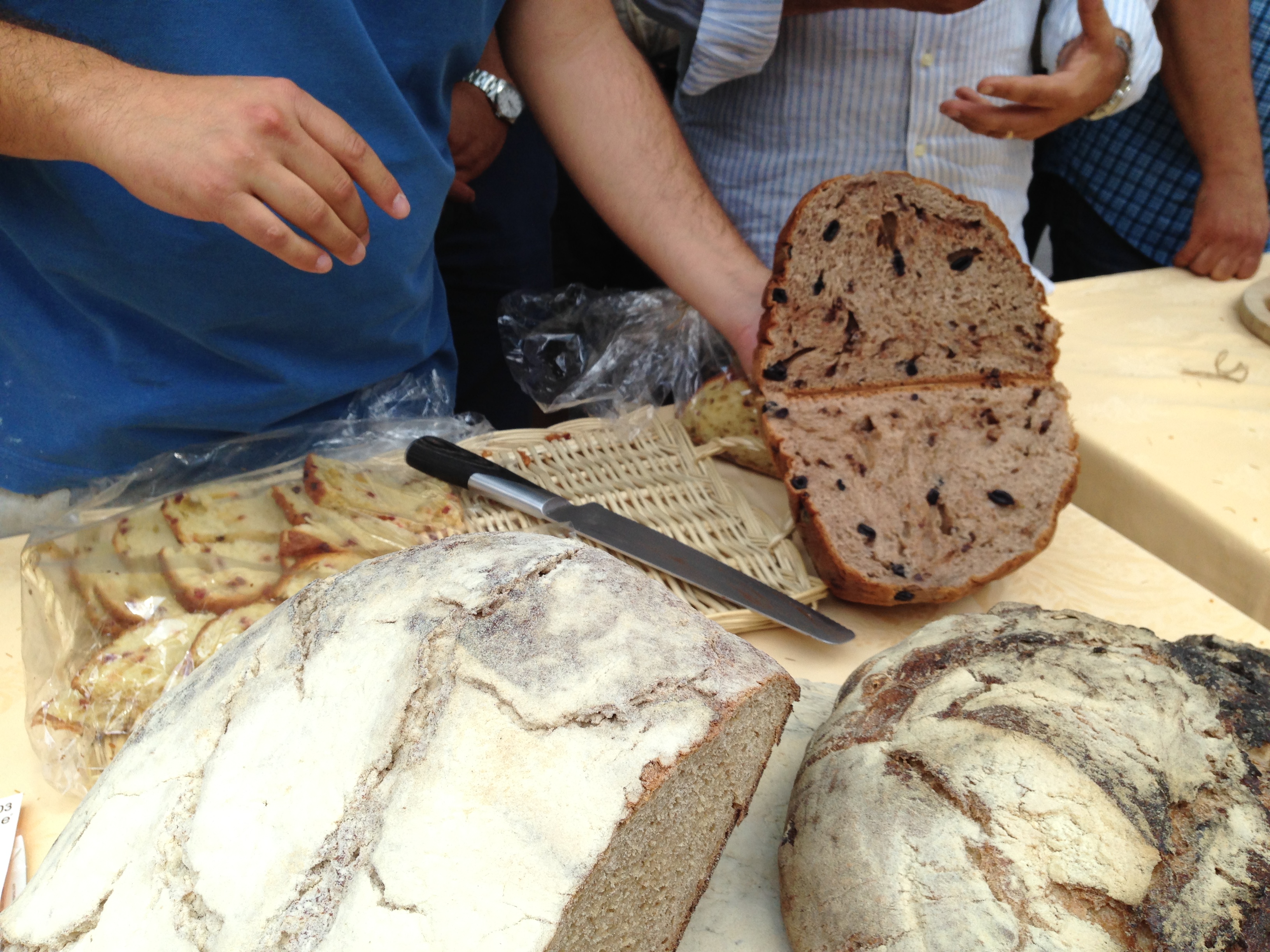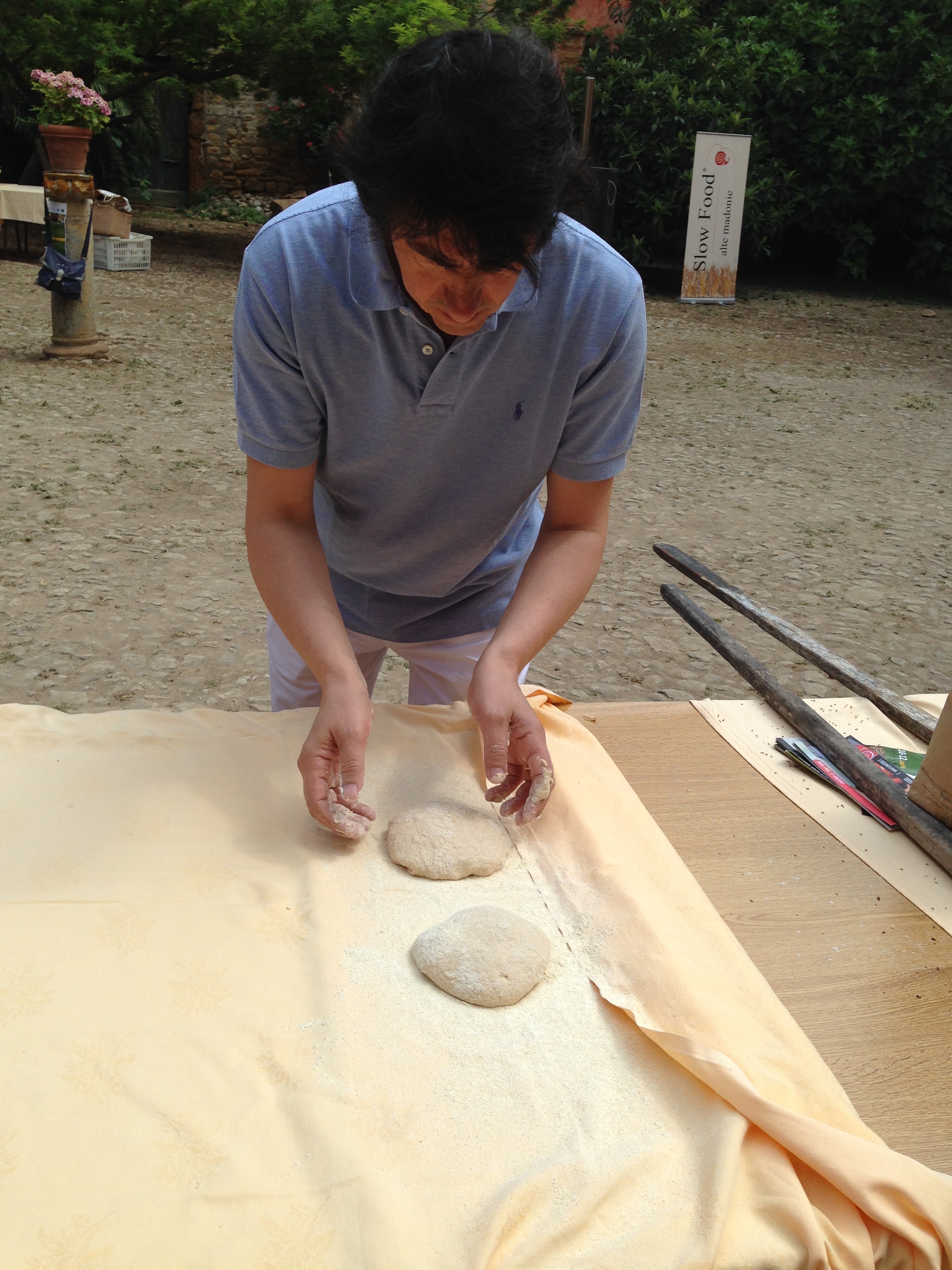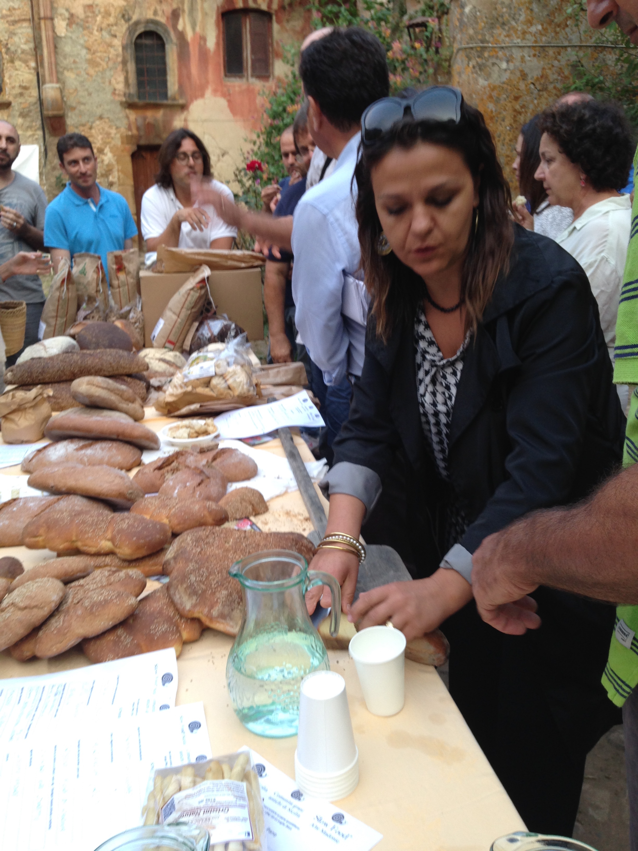 The village of Gangi, is perched on Mount Marone, at an elevation of 1010 meters, overlooking hills and valleys adorned by wheat fields, cow pastures, and olive groves in an enchanting natural landscape. In this setting, at the Estate Gangivecchio, Slow Food Sicily held its event, “FROM ANCIENT GRAINS TO DAILY BREAD” from July 10-12, 2015. This event coincided with the event held in the village of Gangi, July 11-12, Memories and Traditions, a historical, cultural and gastronomic journey, organized by the village of Gangi with the collaboration of the Gangi Slow Food Chapter led by Carmelo Giunta. The Slow Food Event offered the opportunity to bread-makers from all over Italy to come together to share their knowledge and experiences and discuss the best practices in the trade of bread-making. Through brainstorming sessions, guided by Slow Food Sicily President, Saro Gugliotta, the initial guidelines were devised with the purpose of starting to compile a document that could represent “a starting point to establish possible guidelines both regional as well as national on the parameters guiding the quality, traditions and health to share and divulge, not only within the Slow Food context” (excerpt from the program of the event). These guidelines relating to best practices in adopting ancient grains in everyday bread-making. The importance of the journey was a fundamental topic, the process which starts from proper care of the soil, the seeds, the choice of stone milling, the adoption of only one type of leavening, a natural process utilizing sour dough, the kneading done in a manner to avoid heating the dough, all leading to the respect for the consumer. Il borgo di Gangi, giace sul Monte Marone, a quota 1010 metri, circondato dallo splendido scenario di colline e valli tapezzate da campi di grano, pascoli, uliveti in un paesaggio incantevole. In questo scenario si e’ tenuto un evento di Slow Food Sicilia, “DAI GRANI ANTICHI AL PANE QUOTIDIANO”, presso la Tenuta Gangivecchio, dal 10-12 Luglio, 2015,.