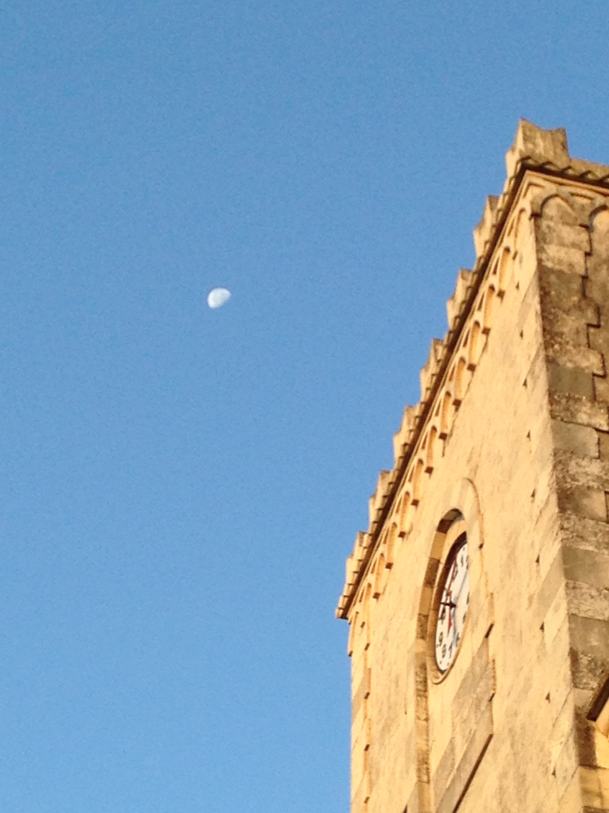 La Bella LUNA still lingering………….above City Hall Clock Tower across from Castle.