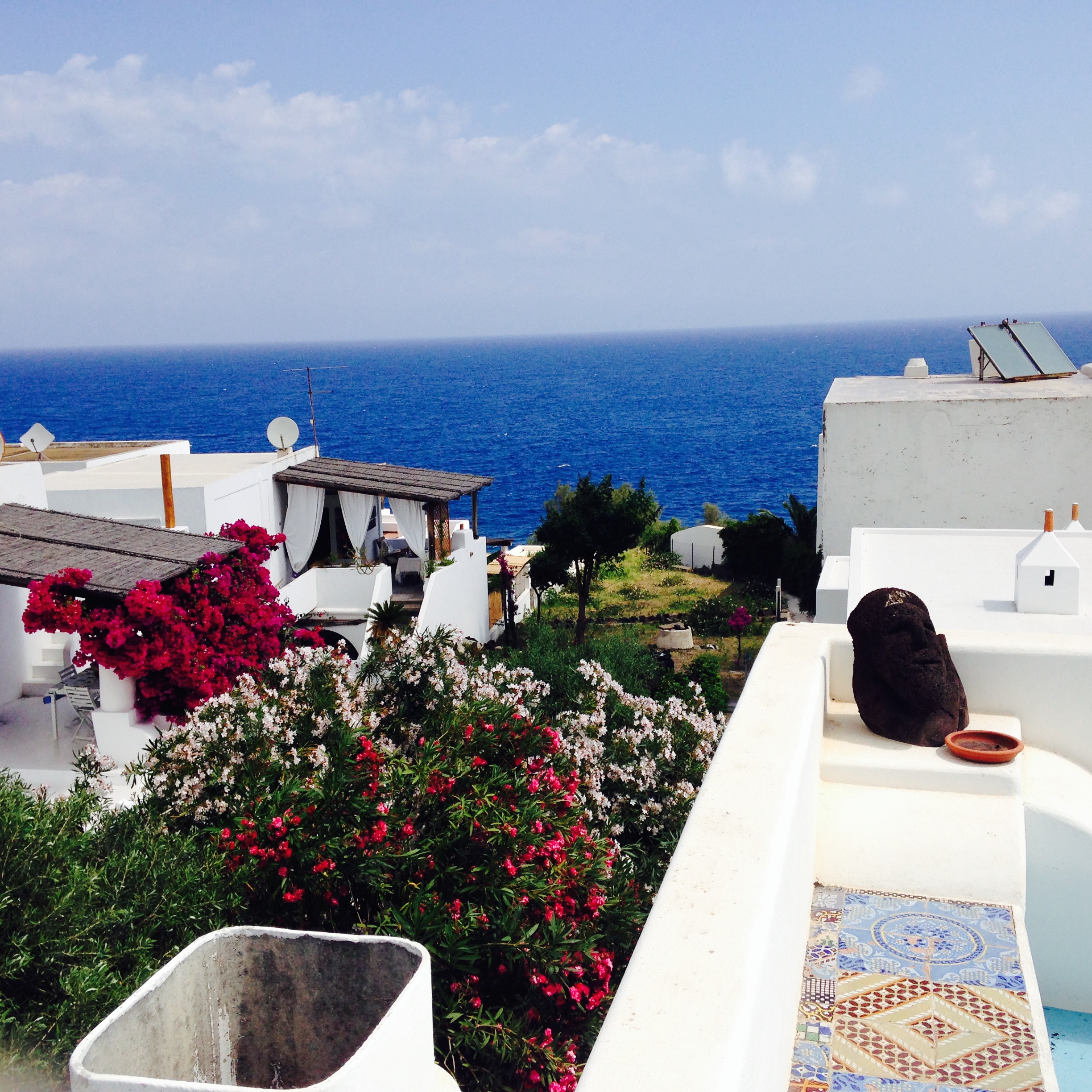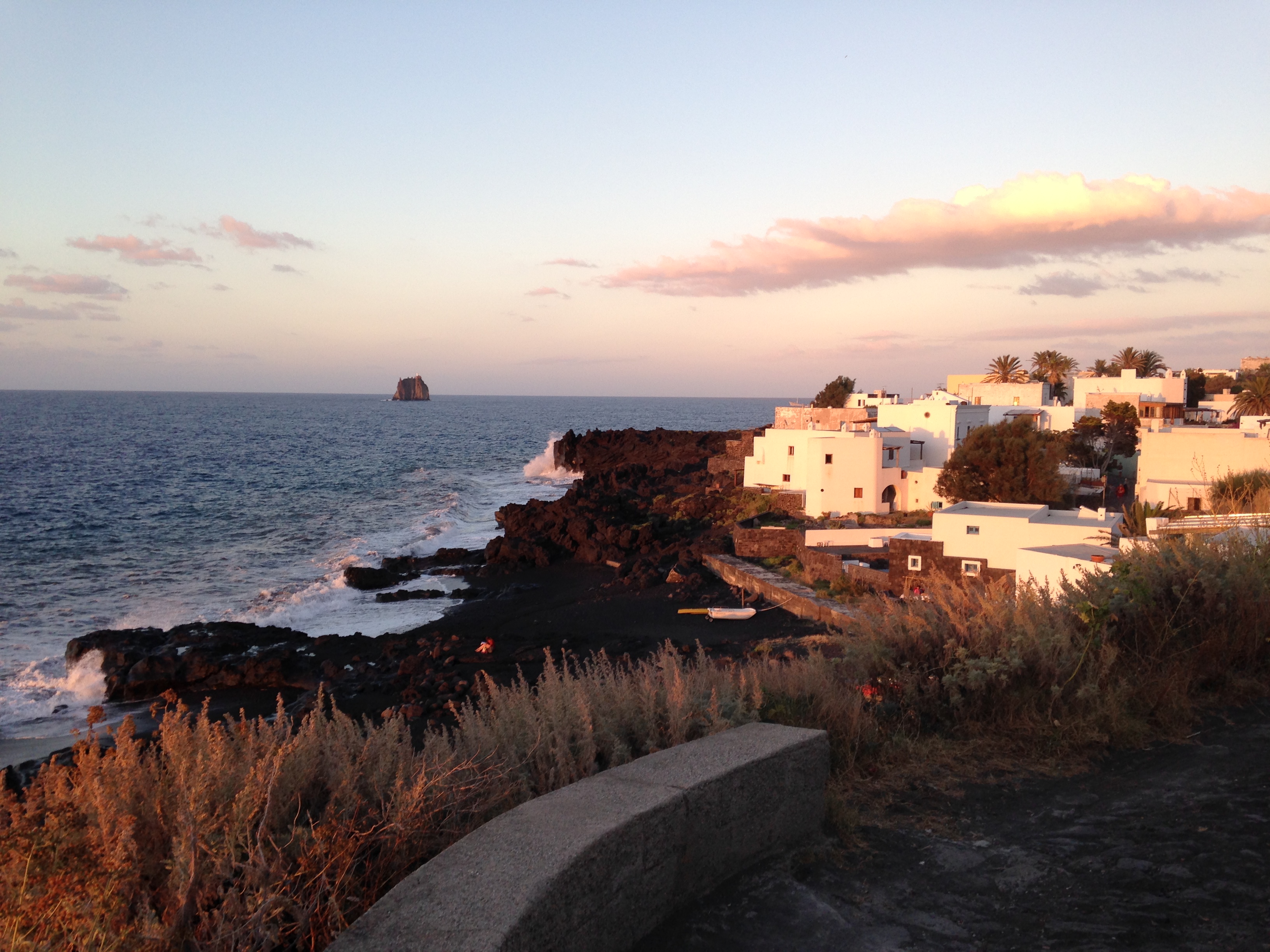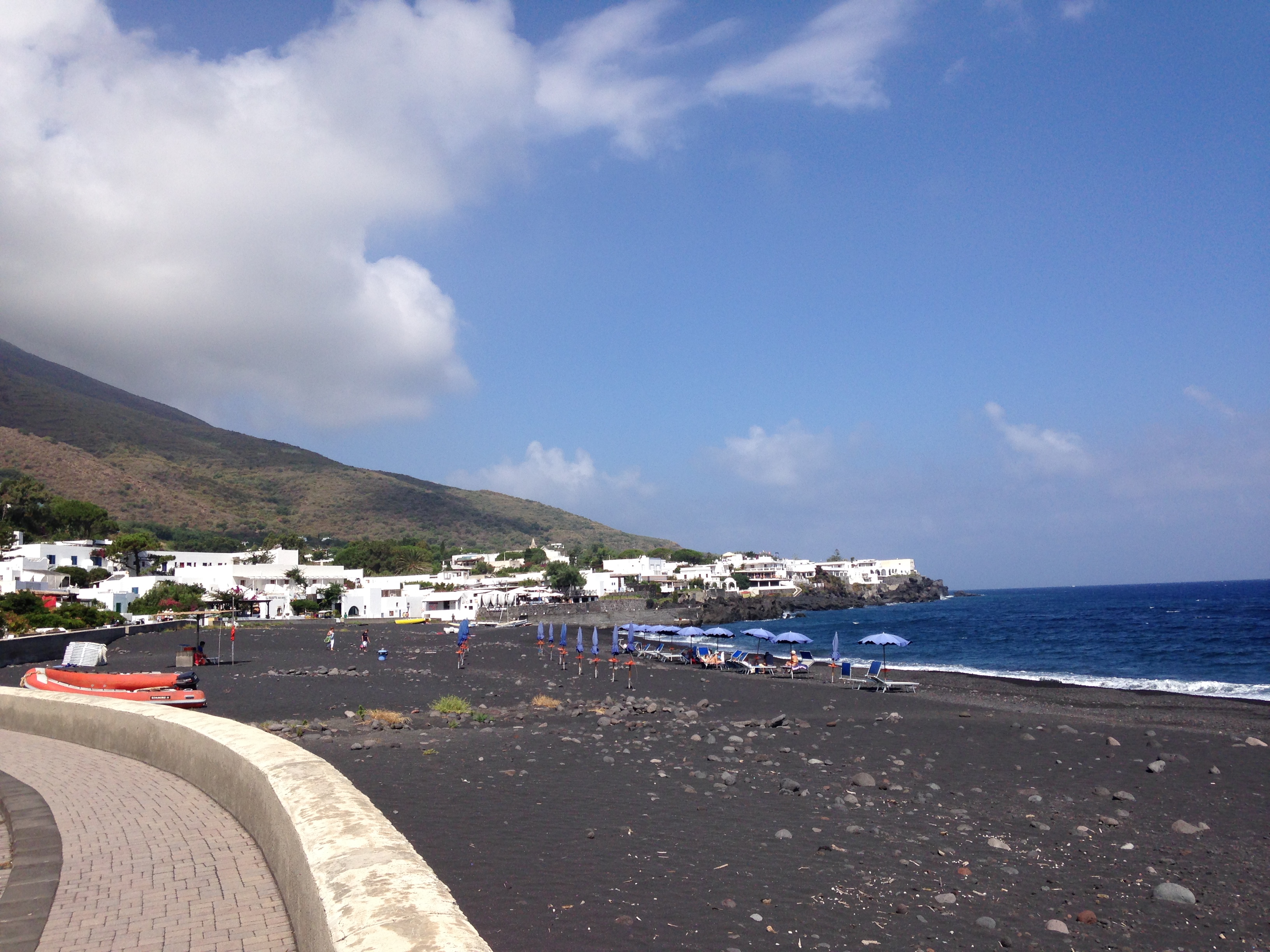 The Aeolian Islands lie off the coast of Sicily on the north-eastern side and in 2012 I wrote about my visit to one of them, the island of Salina, where I enjoyed a weekend with the Slow Food group. For quite a long time, I had wanted to visit another one of the Aeolian Islands, the island of Stromboli and its active volcano; finally this year, as soon as I could, I made plans to go and visit Stromboli. As I planned the trip hurriedly, it turned out to be quite a learning experience on the choices to make on how to travel to the island. Leaving my hometown of Catania, on the eastern coast, I drove to Milazzo, on the northern coast of Sicily and took the hydrofoil to Stromboli. As I had been so busy that I had not had time to research the hydrofoil schedules to Stromboli, I had made the assumption that there would be plenty to choose from during this high season of travel to the islands and that one should not have to worry about missing the hydrofoil. My assumptions proved to be wrong!!! After a little adventure in trying to park my car for the three days I would be in Stromboli, I missed the hydrofoil by one minute. It literally pulled away from the pier as I arrived. It was not a pleasant surprise to learn that the next hydrofoil would not leave for three and one half hours!!!!!!!!!!!!Wow!!!!!!!!!!!! Consequently, I reminded myself I was having fun, and proceeded to wait those hours at the cafe’ close to the pier!!!!!!!!!All of this, of course, after having driven the motorway for hours and having rushed to park my car in order to catch the hydrofoil. As I sat down on the ferry, I was determined to not allow these little incidents to spoil my trip and enjoyed the scenery. We stopped at each of the Aeolian islands on the way and the trip was well worth it when I saw the volcanic island appear.