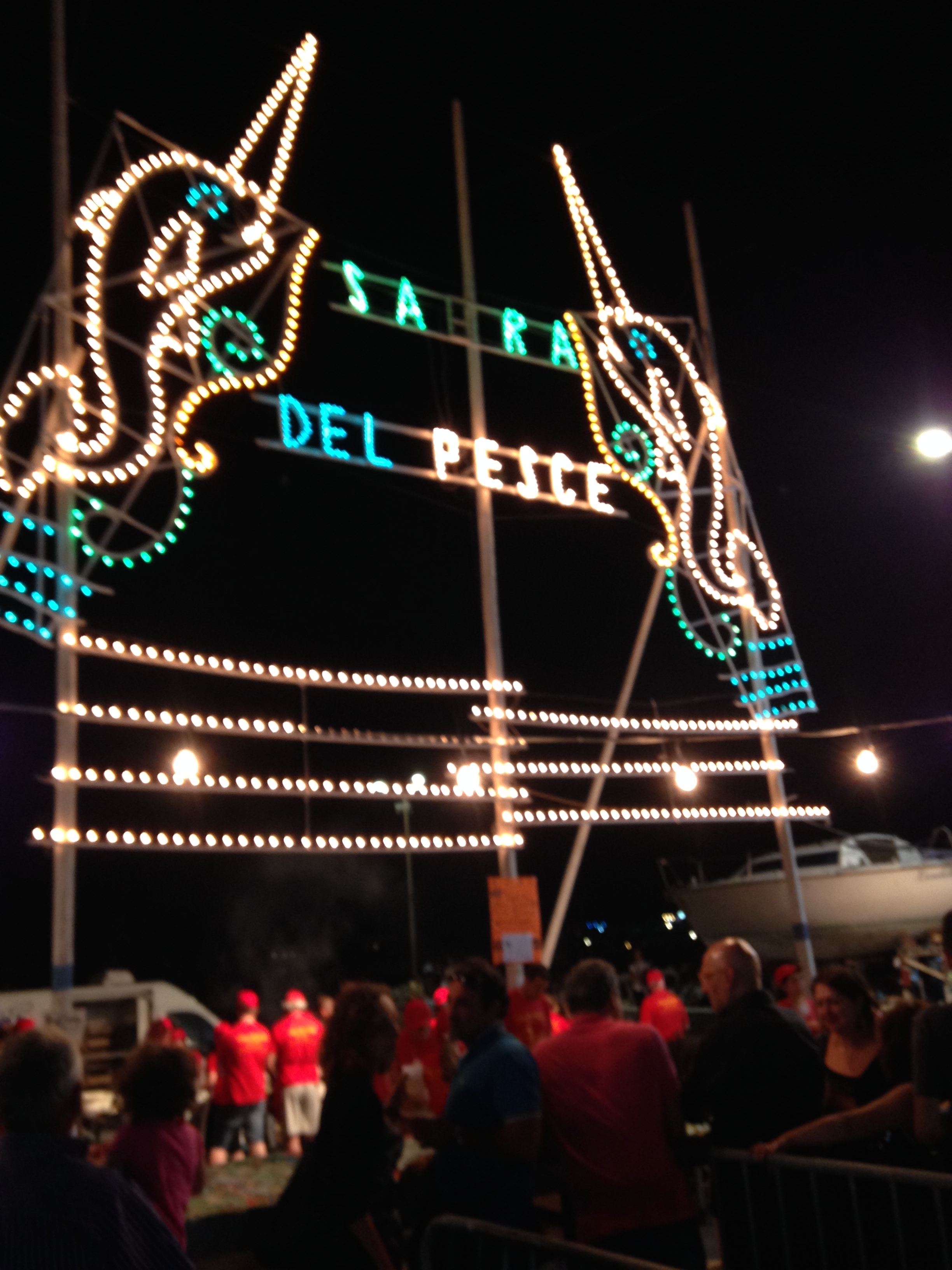 The swordfish festival this year was quite enjoyable on a pleasant summer night. Close to the harbor, some grills were set up and the fish was cooked right there. This Swordfish was seasoned with olive oil and freshly squeezed lemon juice and served with a salad and a glass of wine..