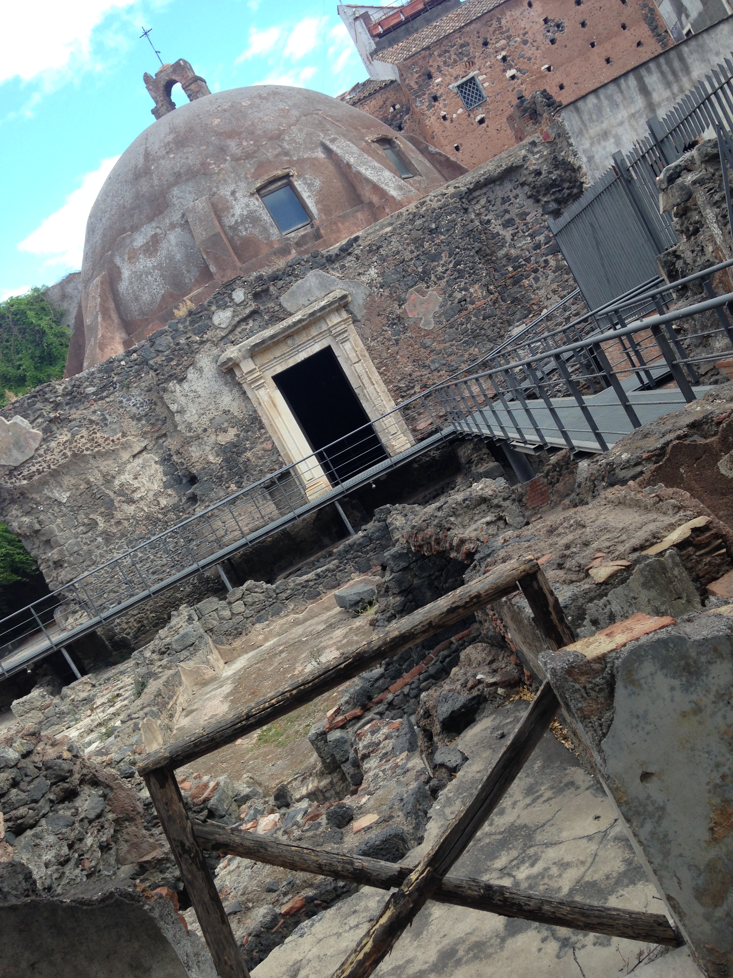 This area of Catania was hit hard by the bombing of WWII in 1943. Today, one can see the ruins to witness the event as in the picture below of a building and a small chapel which had been built on the site in the XVIII century.