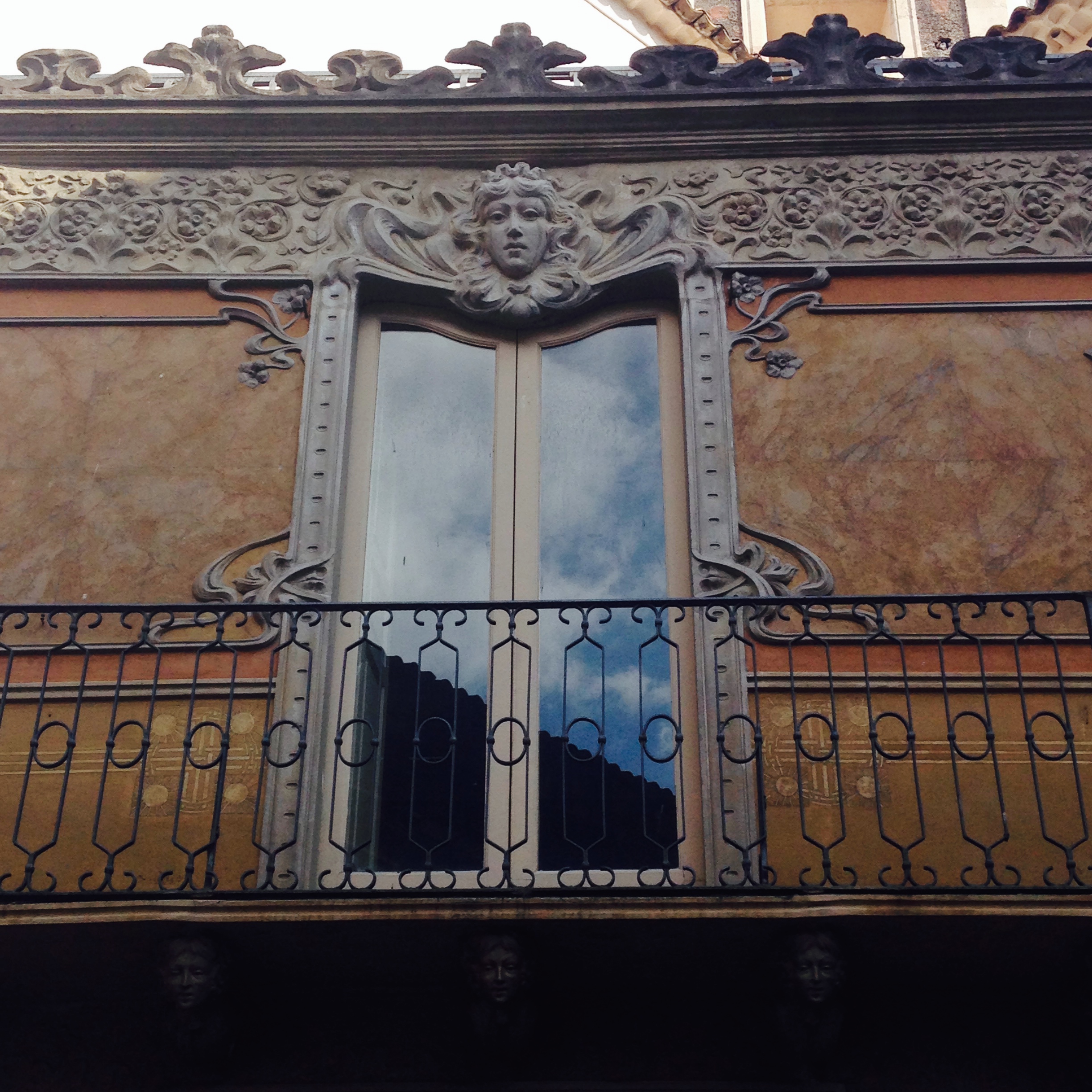 Negozio Frigeri is in the Liberty Style portraying some architectural details that are not usually found in the city. As our guide pointed out, the band of flowers is usually adorning country villas and not buildings constructed in the city.